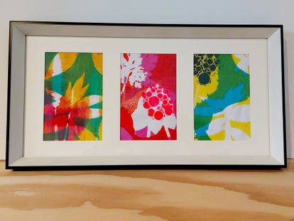 Als we een flinke hoeveelheid prints hebben gemaakt gaan we ‘spotten’. We zoeken naar drie prints voor je drieluik. Je kan hiervoor verschillende uitgangspunten hanteren. Je selecteert je prints bijvoorbeeld op kleur, op compositie, op afbeelding of op techniek. Ik laat je van elk een voorbeeld zien en kijk met je mee als je het moeilijk vindt om uit al jouw kunstwerken er (slechts) drie te selecteren. De overige prints neem je mee of je doneert ze aan de kaarten voor taarten actie. Lees meer.